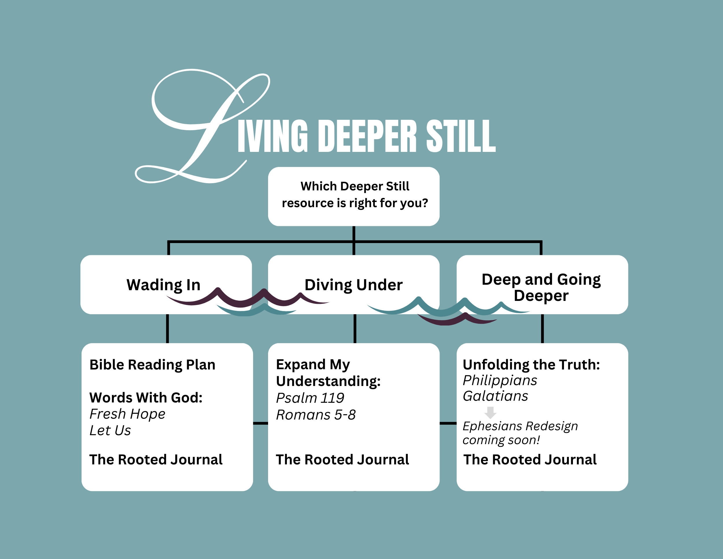 Deeper Still is a discipleship ministry founded by Lisa Meiners, whose driving passion is to help followers of Jesus Christ know the truths of God's Word so they can live deeper still in their faith by applying those truths in their unwanted, unexpected, and unknown situations.